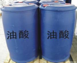 成份:油酸、亞油酸、亞麻酸混合物。分子量:280-282;性狀:微黃色透明油狀液體,凝固后成白色柔軟固體。溶于乙醇、乙醚、三氯甲烷、苯、汽油等有機溶劑,不溶于水,具有羧酸的一般化學通性及不飽和雙鍵的化學特性;包裝:200L塑桶包裝,每桶凈重180kg。用途:精餾油酸用作油漆、樹脂、油墨涂料、印染助劑、乳化劑、選礦劑、潤滑脂、助劑、脫模劑等行業(yè)。儲運條件:避免日曬雨淋,密封保存,勿與酸堿混放,注意